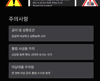 고금리, 불법 수수료, 선이자 요구 등 불법적인 행위를 겪을 수 있으니 주의해야 합니다.