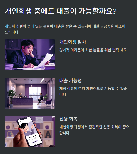 일반 대출과 달리 개인회생 중에도 자금 마련이 가능하도록 돕는 역할을 하죠.