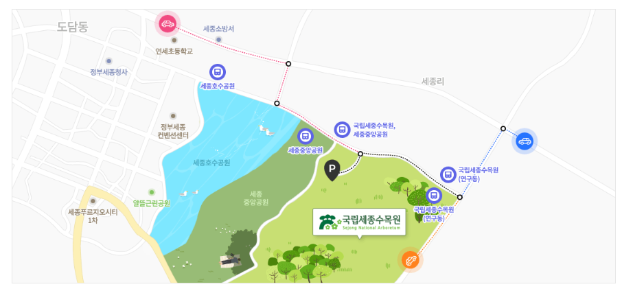 주소 (30106) 세종특별자치시 연기면 수목원로 136 / 전화번호 044-251-0001