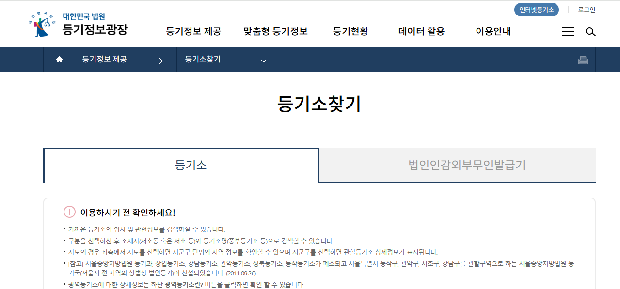 - 등기소 영업시간 확인: 지역별 약간 다르니 반드시 확인 후 방문