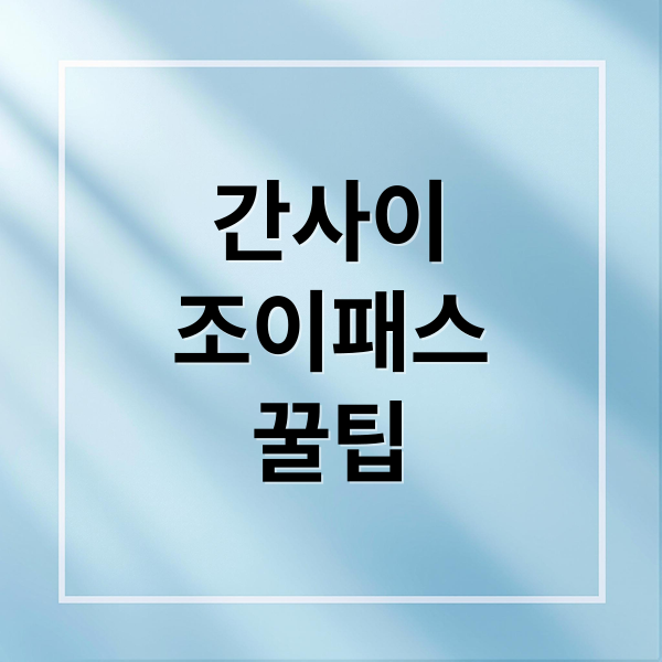 3일차: 고베 스테이크 맛보기, 아름다운 항구 도시 풍경 감상!여행 경비 절약다양한 관광 시설 할인 혜택 제공! QR 코드 활용, 간편하게 입장권 교환! 츠텐카쿠 전망대, 우메다 공중정원 등 명소 방문 계획 시 적극 활용! 마무리간사이 조이패스, 단순한 교통 패스를 넘어 여행을 풍요롭게! 오사카, 교토, 고베 등 간사이 지역 명소를 알뜰하게 여행! 잊지 못할 추억 만들기! 자주 묻는 질문간사이 조이패스는 어떤 지역에서 사용할 수 있나요?간사이 조이패스는 오사카, 교토, 고베를 포함한 간사이 지역의 다양한 관광 명소에서 사용할 수 있습니다. 간사이 조이패스로 교통비도 절약할 수 있나요?간사이 조이패스 자체에는 교통 패스 기능이 포함되어 있지 않지만, 일부 교통 수단 할인을 제공하며, 관광지 입장료를 절약하여 전체 여행 경비를 줄일 수 있습니다. 간사이 조이패스 구매 후 언제까지 사용해야 하나요?간사이 조이패스는 구매일로부터 270일 이내에 사용해야 하며, 처음 사용한 날로부터 7일 동안 유효합니다. 간사이 조이패스를 가장 알뜰하게 사용하는 방법은 무엇인가요?간사이 조이패스를 알뜰하게 사용하려면, 방문하려는 관광지의 입장료와 할인 혜택을 미리 확인하고, 여행 일정에 맞춰 효율적으로 사용하는 것이 중요합니다. 간사이 조이패스와 오사카 주유패스의 차이점은 무엇인가요?간사이 조이패스는 주요 관광지 입장 혜택을 제공하는 반면, 오사카 주유패스는 오사카 시내의 대중교통 무제한 이용과 함께 일부 관광지 무료입장 혜택을 제공합니다. 여행 스타일에 맞춰 선택하는 것이 좋습니다. '여행 & 교통 꿀팁 > 해외로 떠나자' 카테고리의 다른 글해외 여행자보험 추천 & 인터넷 가입 방법 총정리 (비교사이트 활용법까지) (0) 2025.05.20 2025 일본 항공권 가격 비교 사이트 안내 – 최저가 & 할인 항공권 잡는 법 (0) 2025.05.20