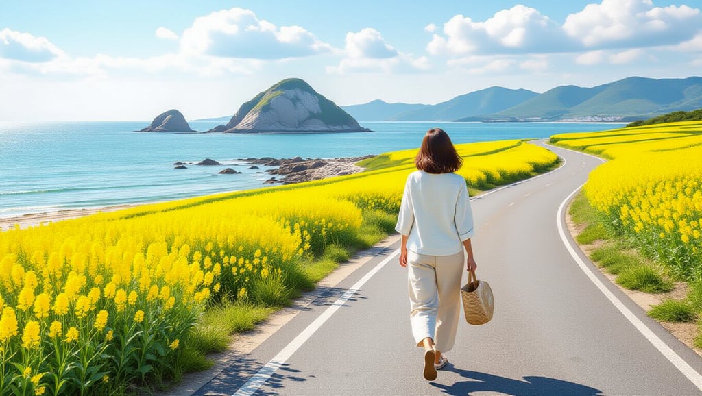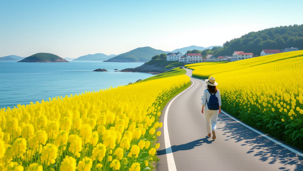 - 화랑포길: 절벽 해안선과 노란 꽃물이 대조를 이루어 역동적인 사진 촬영이 가능합니다.