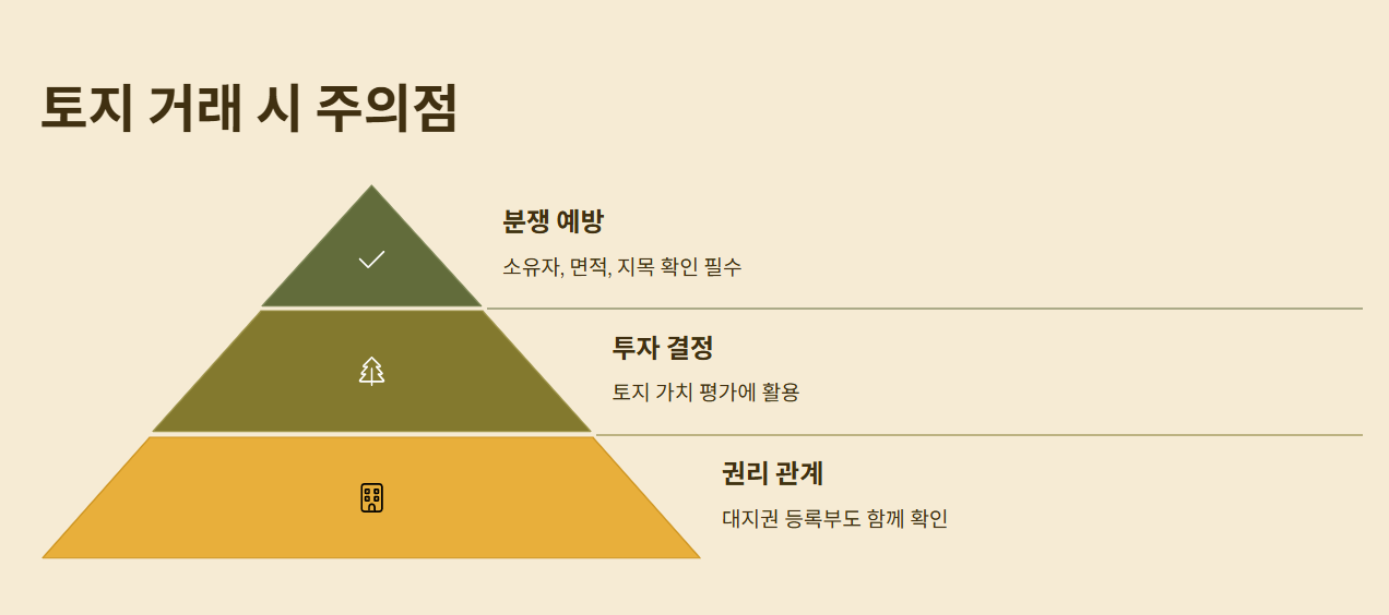 부동산 매매, 건축 계획, 상속 등 토지 관련 법적 절차에 꼭 필요하죠.